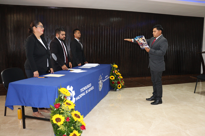 En este acto el presidente del jurado le hizo saber al sustentante el código de ética profesional y le tomó la protesta de ley, al finalizar dicho acto se reconoció el apoyo brindado durante su formación profesional y se hizo entrega de un reconocimiento a los padres de familia.