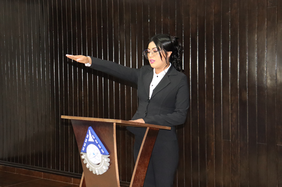 El jurado se integró por: Oswaldo Cobos Amador (presidente), Joselito Jorge Ramírez Cuevas (secretario) y Rodrigo Pérez Luis (vocal). El presidente del jurado le hizo saber a la sustentante el código de ética, la protesta de ley y el juramento profesional.